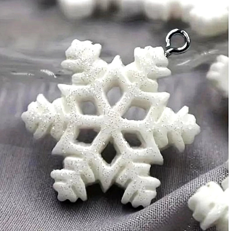 Kicsi fehér csillámos hópihe, akasztható. Használhatod charmként, de akár minikertbe, tündérkertbe is karácsonyi-téli dekorációhoz.