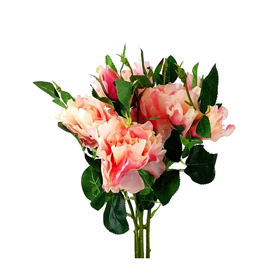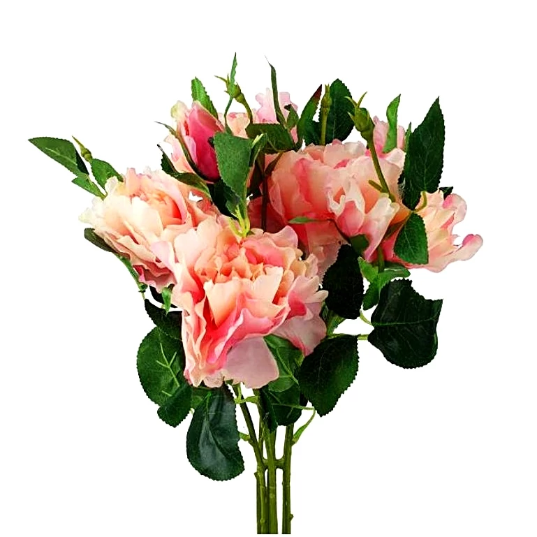 Fodros rózsacsokor, rózsaszín. 7 ágas, rózsafejek mérete: 9 cm, hossza kb. 50 cm
