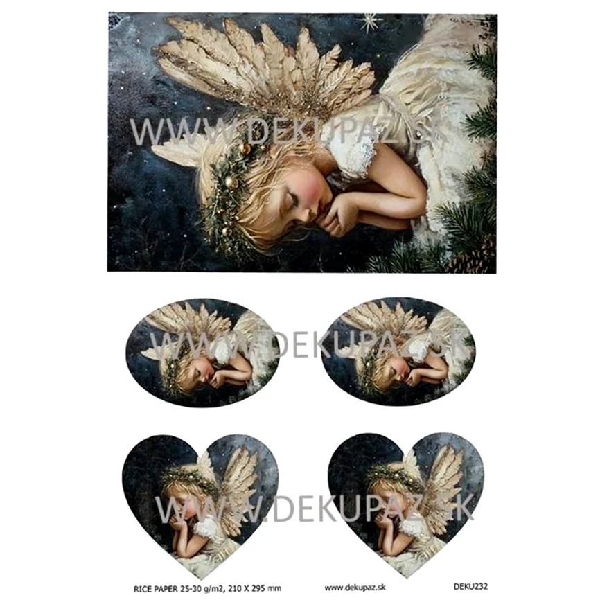 A rizspapírt a dekupázs technikában használják különféle felületek díszítésére. Könnyebb vele dolgozni, mint szalvétával, mivel nem szakad el. Sokkal tartósabb és erősebb, mint amilyennek látszik. A mintát nem vágják ki, hanem egyszerűen kitépik és ragasztják a tárgyhoz. Ez az áttetsző, finom papír erezett szerkezetű, A4-es méretű, azaz 21x29,7 cm-es és 28-35 gramm/m2-es súlyú.