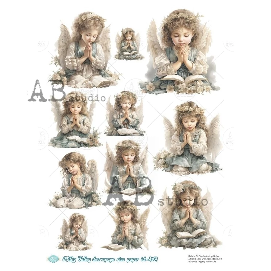 Rizspapir - imádkozó angyalok. A rizspapír egy könnyű, 30-35 gr-os papír, amely vékony szálakat tartalmaz. Bármilyen felületen használható dekupázs (decoupage) technikához a fától a vászonig, üvegig, fémig és akár textilre is! Tökéletes választás mixmédiás projektekhez. Ezeket a papírokat egész lapként vagy darabonként is használhatjuk.