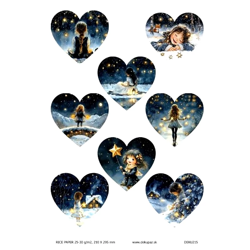 Rizspapír - kislány csillagokkal, nyolc sziv
